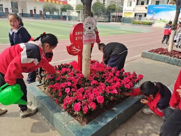 活动当天,各中队开展了植树节班会活动,组织学生将自己亲手种植的绿色盆栽放进教室,将教室环境装扮一新。班会活动结束后,还对劳动实践基地进行了维护,并给树木挂上精心制作的绿色标语牌。学校党支部、德育部为各办公室送上了绿色盆栽,老师们给绿色盆栽浇水、养护,进一步提升了校园环境的质量。