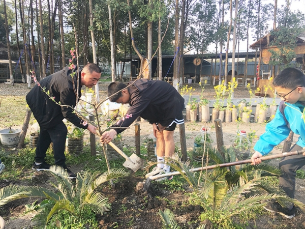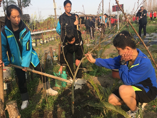 植树节前,该校党支部召开专题会议,制定了活动方案,政教处具体负责布置活动分工。下午劳动实践课时,同学们在班主任的带领下拿着劳动工具分散在了校园的各个角落,热火朝天地行动起来,挖坑、种树、浇水、护树,把一株株开放着粉红花朵的桃树苗、绽着艳红花蕊的海棠树苗栽了下去。八年级学生李麟说:“我和同学一起种了桃树,给校园增添了新的色彩,非常有成就感,等桃花盛开的时候,我要与我栽下的小树合影留念。”