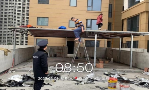 四川新闻网消息 近日,安州区综合行政执法局接到群众举报,称恒跃·紫宸小区顶层住户正在楼顶露台搭建钢架结构违法建设。接到举报后,城市管理行政执法人员立即赶往现场进行调查。