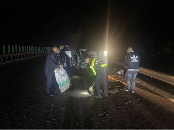 四川新闻网消息 3月28日22时30分,安州区综合行政执法局二大队执法人员巡查至辽安路兴仁路段,发现一辆五菱小货车发生侧翻事故,执法人员立即上前查看情况,车内有一名被困人员,货物散落严重堵塞道路。