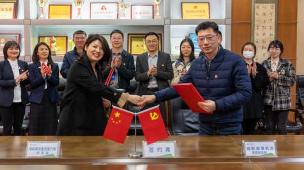 开展座谈交流,感悟 “数字化”。双方就支部特色和党建成果进行了深入交流,同时聚焦数字化应用商讨合作。双方均表示,将坚持国有企业政治属性,有效整合资源优势,抢抓数字经济发展的重大机遇,不断深化信息技术融合创新,争取为推进各自领域数字化赋能现代化建设贡献更大力量、发挥更大作用。随后双方进行了“党建和创”签约仪式,着力掀开“结对共建聚合力,互促共赢共提升”的新篇章,构建“资源共享、优势互补、互相促进、共同提高”的党建工作新格局,以党建引领赋能数字化转型发展。(供稿:绵阳市烟草专卖局 龙思洁)