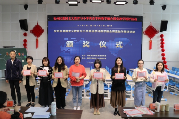 赛课结束后,绵阳市安州区教育研究室党支部副书记张文洪为获奖老师颁奖。(供稿:安州区七一实验小学 赵敏)
