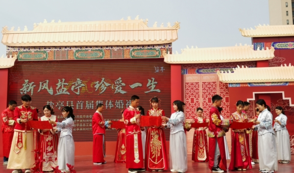 据悉,首届“集体婚礼”由盐亭县委宣传部、县妇联、县民政局、县总工会、共青团盐亭县委、县新时代文明实践中心共同举办。参加当天“集体婚礼”的新人都是在平凡岗位上默默奉献的基层机关、企事业单位职工。(供稿:盐亭县总工会 白玲)