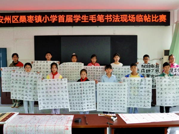 安州区桑枣镇小学举行首届学生毛笔书法临帖比赛