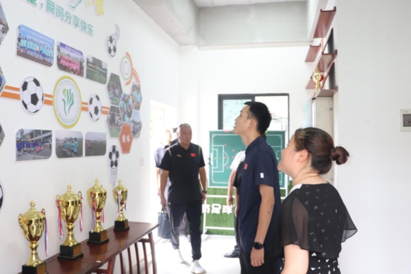 复核评估专家组参观了学校足球文化长廊、足球荣誉展厅、足球运动场。听取了该校校长高晓庆关于校园足球工作的汇报。专家组通过实地查看、查阅资料、教师座谈、交流意见等形式对沙汀实验小学校园足球工作进行了全方位的检查和指导。