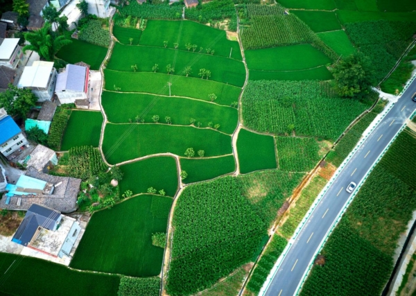 公路、民居、稻田相映成趣 胡宇 摄