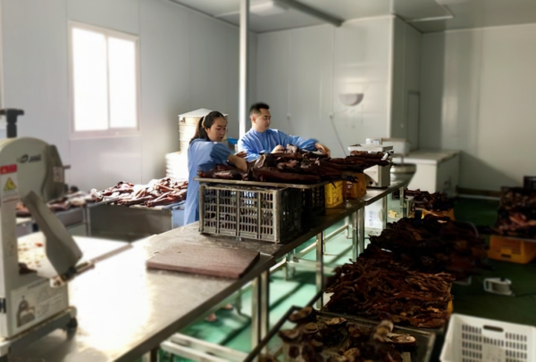 “我们红鸡的鸡苗来自保种育种场,喂的食料是用玉米、小麦、大豆配制而成的。”绵阳市翔龙生物科技公司饲养员肖丽琼说。在加工销售环节,坝子乡已建立初加工企业,研发风干鸡、酱香鸡、白味鸡等产品,形成了较为稳定的“线上+线下”销售体系,产品远销成都、重庆等地。