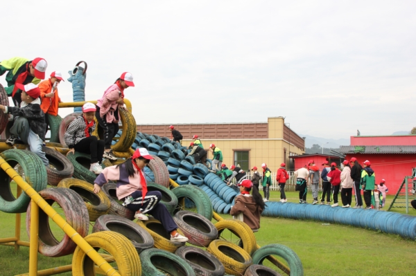 “原来轮胎还可以这样回收利用”“太神奇,太好玩了”。在一望无垠的青青草地上,同学们进行环保故事分享,自由畅玩游乐项目,在绿意盎然的环境中感受大自然的自由与美好。大家纷纷表示,要亲近自然,保护自然。自觉践行光盘行动,餐后有序进行垃圾分类投放。