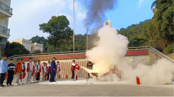 实操现场,消防救援人员用柴油点燃树枝,模拟初期火灾场景,并“手把手”指导学生们进行灭火操作,现场的师生代表拿起灭火器亲身感受了拔环、按压、喷射、灭火的全流程。(供稿:北川西苑中学 许翠华)