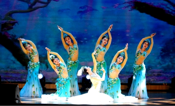 演出现场,来自中国东方演艺集团的艺术家们,将15个观众耳熟能详又独具特色的经典舞蹈、声乐、器乐节目送到劳动者身边,共赞祖国大好河山。