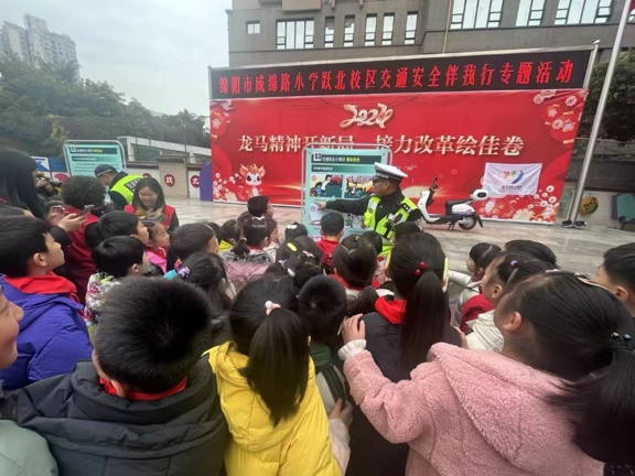 四川新闻网消息 3月6日,绵阳涪城区工区街道综执办联合辖区交警在成绵路小学跃北校区开展道路交通安全教育进校园宣传活动。
