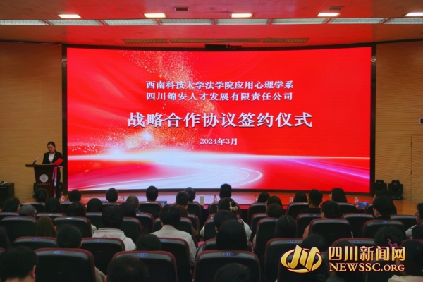 四川新闻网消息(记者 刘佳慧 摄影报道)3月13日下午,西南科技大学法学院与四川绵安人才发展有限责任公司签订战略合作协议,成立“绵阳市安州区青少年心理健康及素质教育实践中心”,进一步实现青少年心理健康及素质教育专业普及,助力青少年健康成长。