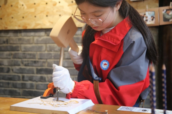 活动中,税务部门还邀请了三台木刻非遗传承人讲解木刻的基本技法和步骤,带领大家以税徽、“税”字的经典书法等为灵感进行木刻创作,让学生在学习税法知识的同时感受传统艺术的熏陶。期间,税务干部与学生一起发挥想象力和创造力,在一笔一刻中表达对税收的理解和感悟,经过打磨、雕刻、着色等多个环节,一个个方正的木料变成一幅幅五彩斑斓、税味十足的独特木刻作品。与此同时,参加活动的税务老同志还纷纷结合自身经历讲述了“税月”变迁中的故事,坚守初心、忠诚担当的精神让在场学生深受鼓舞。