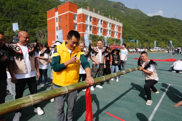 当天,参加省级项目比赛的北川各乡镇19支队伍也同步启动了北川地区的选拔赛。爬天杆、推杆、抱蛋、丢窝窝等民族传统体育项目赛事充满北川羌族特色,让往日安静的乡间村道沸腾,丰富的体育大餐激活了云上羌寨动能。