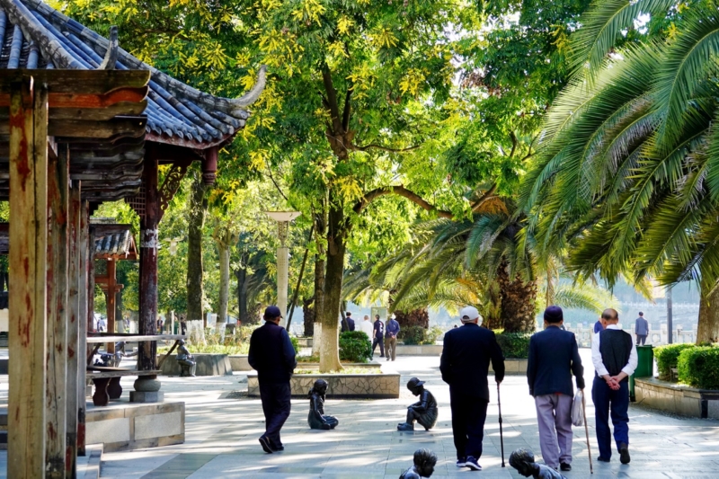 市民在“口袋公园”散步休闲