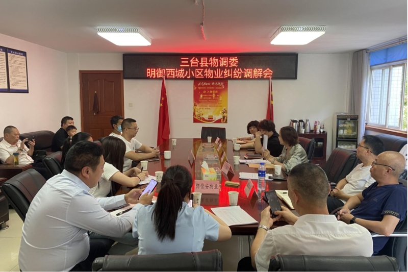 物业矛盾纠纷涉及物业收费、服务态度、质量安全、装饰装修等多方面。为充分发挥部门工作合力,三台县住建局联合司法、法院、公安等8个部门,成立三台县物业纠纷人民调解委员会(以下简称县物调委),旨在依法、及时、有效化解物业矛盾纠纷,维护业主和物业服务企业的合法权益。