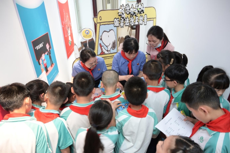 检察院“熊猫未士·江小侠”志愿服务队以“检教同行·共护成长”为主题,设置“法‘字’在心中”“法治飞行棋”“法治剧本杀”“法治电影院”和“法治小卖部”五个普法项目,对青少年开展沉浸式学法游园活动。