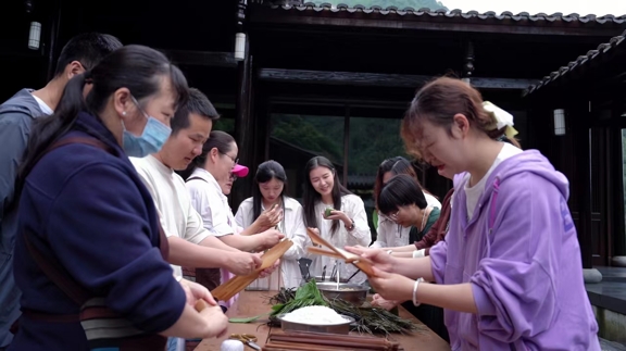 “衢州话‘得木’是什么意思?”“龙舟?”“不对,是‘端午’的意思!”趁着煮粽子的间隙,大家玩起了方言猜猜猜的游戏,一个面临大海,一个身处大山,相处久了,文化自然而然也就融合了。