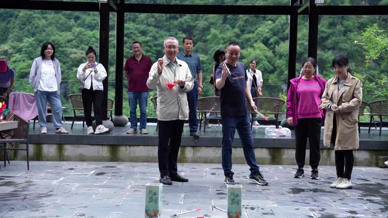 吃美味的粽子前,大家玩起了端午的必备节目——投壶,现场花样百出,有“万箭齐发”却一箭未中的,有潇洒一抛精准进壶的,有用力过度箭矢弹出壶的……除了投壶,踢毽子也是餐前运动的不错选择,脚法娴熟的,毽子在他们脚下就是一个听话的小精灵,动作生硬的,毽子就是无情的淘气包,四处乱飞。游戏过程中欢声笑语不断,大家相互鼓励,相互竞争,共同享受着这个欢乐的时刻。