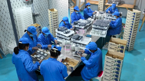 同时,北川依托园区冷链仓储为中心,采用冷库分拣装箱+冷链运输直达运送模式,实现蓝莓采摘到市场销售不超过36小时。