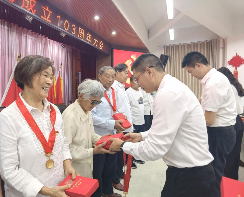 大会在雄壮的国歌声中开启序幕。镇党委副书记卢远萍宣读了关于表彰先进基层党组织、优秀党务工作者、优秀共产党员的决定,并公布了“党龄达到50年”的党员名单。随后,镇领导班子成员为获奖者颁发荣誉证书和纪念章,对他们的杰出贡献表示崇高敬意,同时勉励全体党员以他们为榜样,充分发挥战斗堡垒和先锋模范作用。