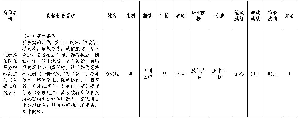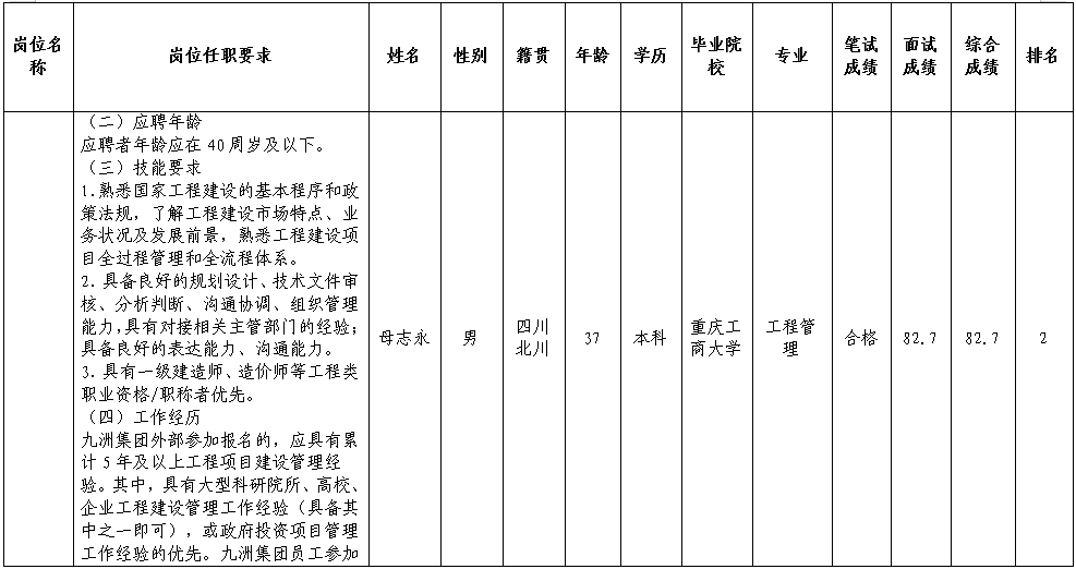 四川九洲投资控股集团有限公司关于招聘中层管理人员成绩的公示