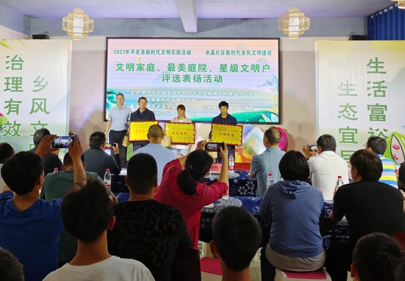 以文明村镇创建为抓手,平武县各地深入开展身边好人、道德模范、最美家庭、好儿媳等先进典型评选活动,成功创建全国文明村1个、省级文明村镇3个、省级文明单位2个、省级最美家庭7户,市级及以上文明单位42个、文明校园11个,市级文明村镇30个,全县县级及以上文明村镇创建占比达91.86%。