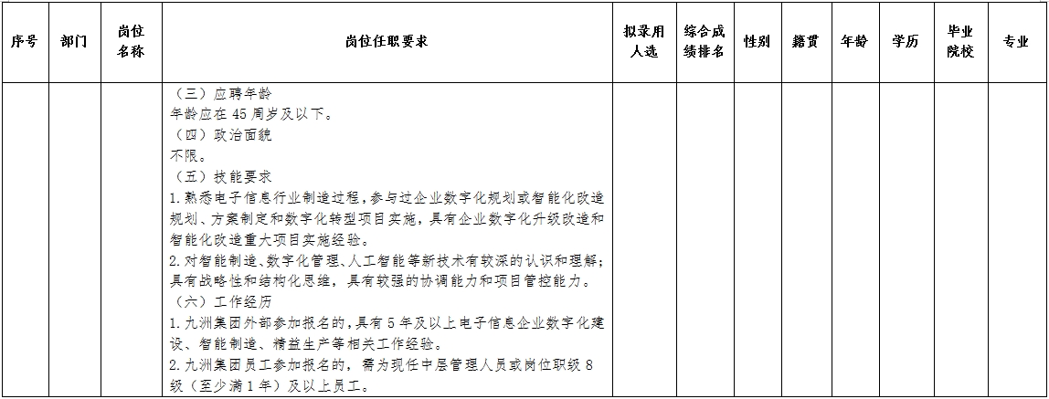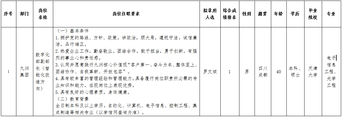 四川九洲投资控股集团有限公司关于招聘数字化部副部长(智能化改造方向)岗位拟录用人员的公示