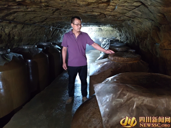 在研发基地后面,人工开凿的600余平方米的窖藏室深藏山中。窖藏室内,一口口大酒缸装满了纯粮酒,空气中弥漫着阵阵酒香。“窖藏室可储存100余吨白酒,目前窖藏白酒30多吨。”彭洪明介绍,他的白酒酿造厂年产白酒、米酒180余吨,每一款产品生产前都经过研发基地多次试验,经过国家相关部门检测合格。如今,研发基地通过控糖技术对水果发酵工艺进行改良,生产的果酒指标完全达标。