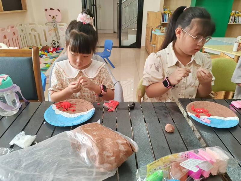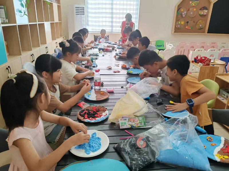 活动当天,参加活动的20余名孩子怀着期待与好奇的心情早早地来到活动现场。社工老师为大家详细讲解了制作黏土作品的方法、技巧以及注意事项,并向现场的孩子们展示了活动样品,供他们参考学习。随后,志愿者为孩子们分发纸盘、黏土、造型工具等材料,孩子们迫不及待地动手制作,纷纷发挥丰富的想象力,通过揉、捏、搓等动作,将黏土塑造成型。片刻后,海星、螃蟹、贝壳、大海、浪花、沙滩等形态各异的作品呈现在大家眼前。