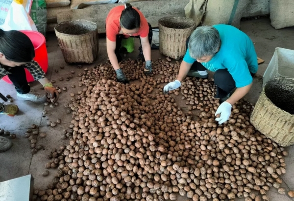 江油关镇是“平武核桃”国家地理标志保护产品专用标志使用地和县内核桃主产区,通过多年发展,镇域内核桃种植面积3.2万亩,绝大部分进入盛产期,年产量1.2万吨,产值达近8000万元。(平武县委宣传部供图)