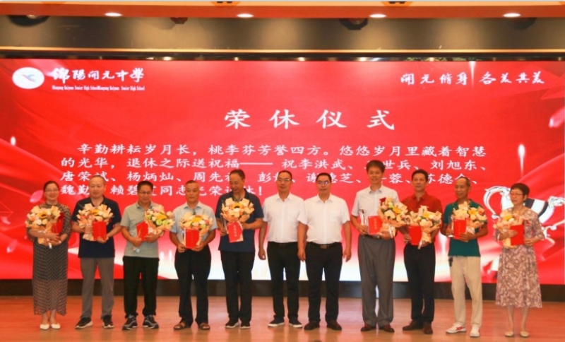 仪式上,新入职教师为李洪武、谢德芝、刘旭东、许蓉等12位光荣退休教师佩戴光荣退休红花。校领导为退休教师颁发退休荣誉证书及奖杯。