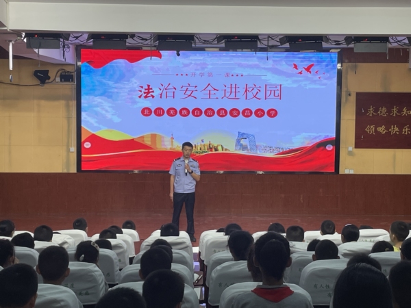 9月12日,北川羌族自治县安昌小学邀请法治副校长毛静、关炎文等走进校园,为全校师生开展了“开学第一课 法治安全进校园”专题讲座。本次活动旨在有效提高青少年法治意识,加大未成年人的法治宣传教育力度,提高在校学生的法律意识和自我保护能力。