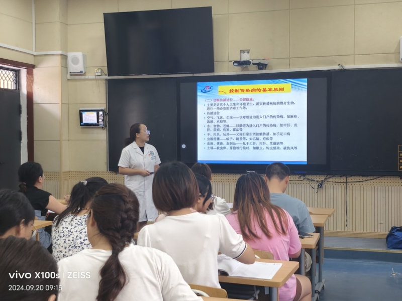讲座中,北川县第三人民医院公卫科主任高丽蓉结合当前季节特点,详细讲解了流感、水痘、诺如病毒等秋季高发传染病的发病症状、传播途径、易感人群及预防措施。高丽蓉强调,预防传染病的关键在于养成良好的个人卫生习惯,如勤洗手、戴口罩、保持室内通风等。同时,她还对学校如何开展晨检、因病缺勤追踪、卫生消毒等工作提出了具体指导建议。