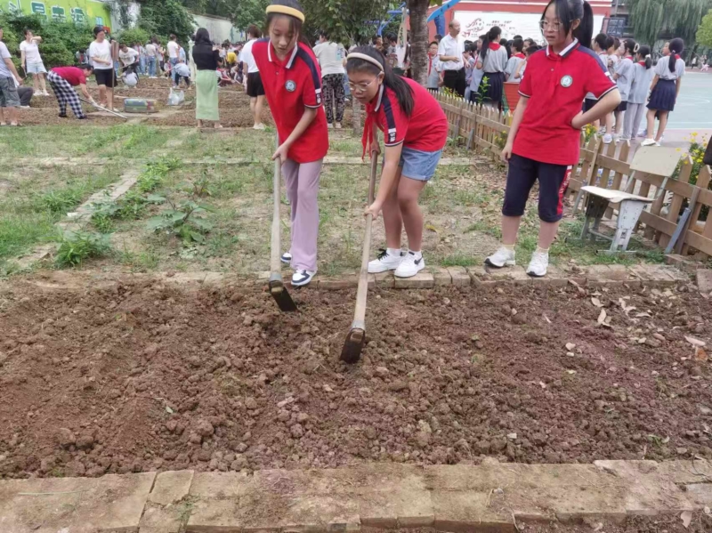 仪式上,各班学生代表介绍了自己班级农耕基地名字的由来及寓意。活动中,师生及学生家长们手持工具,满怀激情地投入到土地的翻整和作物的种植中。家长代表不仅指导学生如何正确使用工具、如何科学种植,还与师生一起劳动、交流心得。