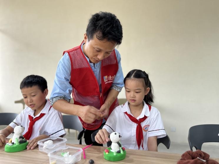 在何老师的悉心指导下,孩子们渐渐掌握了技巧,经过手工捏、搓、揉、镶等工序,手中的大熊猫越来越有模有样。还有的孩子发挥创意,为自己的大熊猫添加了独特的装饰,如一个可爱的小领结或者一片翠绿的竹叶。经过一个小时的努力,大家纷纷完成了作品,一只只形态各异、萌趣十足的大熊猫呈现在眼前,仿佛在向大家展示着它们的可爱与活泼。
