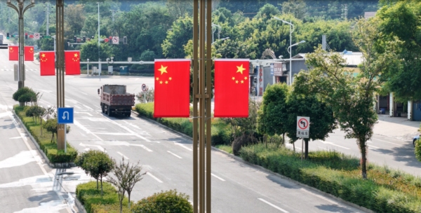绵阳三台:红旗招展迎风扬 喜迎国庆氛围浓