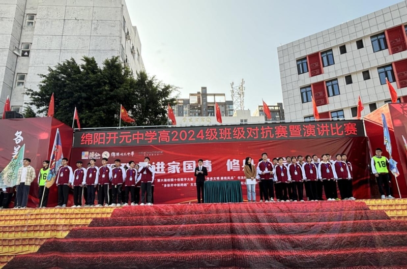 10月21日上午,绵阳开元中学操场上热闹非凡,一场以“盛世家国梦·奋进开中人”为主题的高2024级班级对抗赛启动仪式暨演讲比赛精彩上演。本次活动分班级对抗赛启动仪式和演讲比赛两个单元。