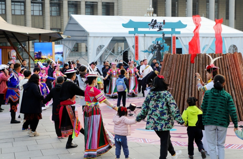 当石家庄文化广场传来悠扬的白马民歌,当河北博物院前响起悠悠羌笛,当篝火的激情绽放于车水马龙的城市中央,一场独具地域特色和民族风情的民俗文化盛宴精彩上演。作为本次活动的主题县,平武举行了丰富多彩的文艺展演,将独具特色的平武文化带到了石家庄。“平武美丽的自然风光让我神往,有机会一定要去看一看。”石家庄市民陈凤在观看白马节目展演后激动地说。