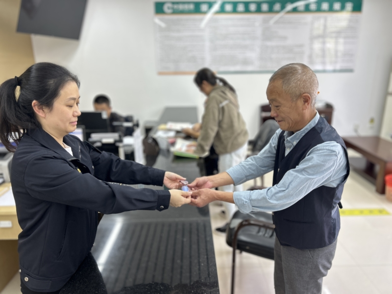 “您好,我们这边为您提供老花眼镜,对于相关政策有任何不清楚的地方欢迎随时问我们。”近日,在绵阳涪城区烟草专卖局行政服务大厅,工作人员小左热情地为前来换证的老年零售客户提供服务。
