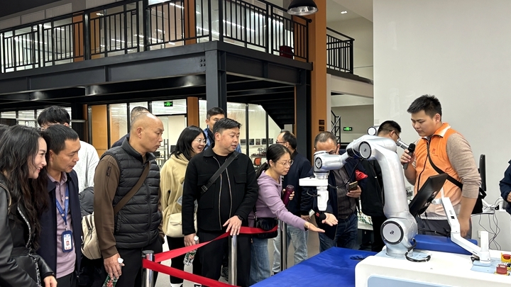 15日下午,在成都中德职教创新集聚区,三台县刘营职中“三名工程”建设团队先后参观了培训中心机械加工实训车间、AHK培训考试室,欣赏了德国AHK职业资格考试作品。走进KUKA机器人西南大区教育研究院,考察了研究院的装配、焊接、雕刻、码垛等八个机器人教学工作站,观摩了学生的现场操作。