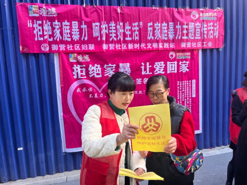 为进一步提升广大妇女和家庭成员的反家暴意识,保护妇女和家庭成员的合法权益,促进家庭和谐,11月27日,绵阳市涪城区石塘街道御营社区组织开展“拒绝家庭暴力、呵护美好生活”反家庭暴力主题宣传活动。