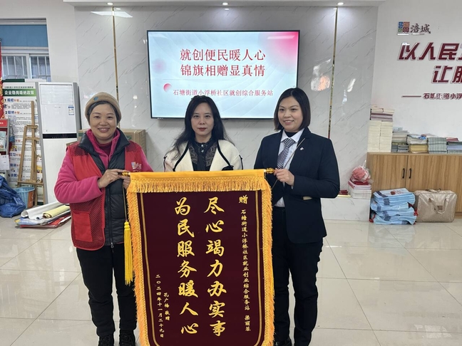 11月29日,绵阳市涪城区石塘街道小浮桥社区就业创业综合服务站迎来暖心一幕,社区居民孔广梅将一面写有“尽心竭力办实事、为民服务暖人心”的锦旗送到社区工作人员手中,以表达长达两年的感激之情。