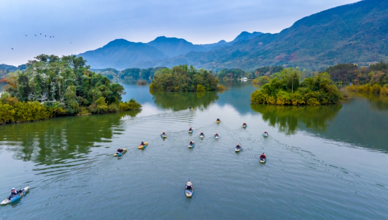 “围绕‘古海遗珠 安逸安州’文旅IP,精心打造环山环湖自行车公开赛、‘冠军杯’乒乓球赛、健身操(舞)大赛、篮球联赛及棋牌赛等五大精品体育赛事,安州区走出了一条以体育赛事助力乡村旅游发展的新路子,实现生态、文化、体育和旅游产业融合发展。”安州区文广旅局相关负责人表示,本次白水湖路亚舟钓赛将进一步推动“赛事+产业”全面升级,安州将聚焦创建“国家级旅游度假区”和“天府旅游名县提升建设”为目标,以赛事串联,持续擦亮“ 古海遗珠 安逸安州”文旅IP。(图片由安州区委宣传部提供)