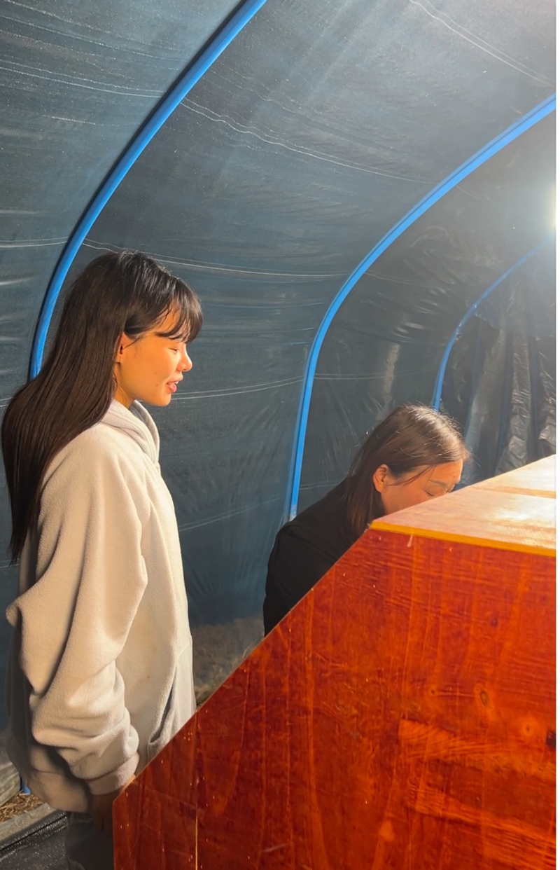创业者李娇在检查温室条件