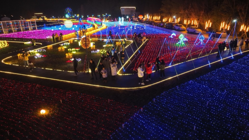步入灯会布展区域,可谓张“灯”结彩,一路繁“花”。创意山体许愿池与科技极光灯组交相辉映、高悬天际或错落路旁的彩灯宛如繁星坠落、无人机划过夜空与地面灯火呼应,构成美轮美奂的立体画卷,为游客营造出一步一景、年味满满的全方位沉浸式体验。