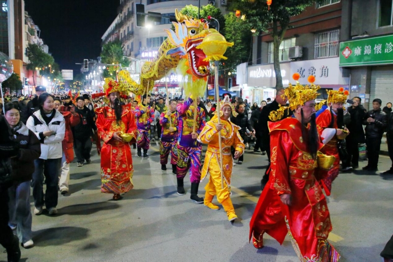 夜幕下,平武风情大型巡游隆重上演,锣鼓队、曹盖队、民族队、牦牛队、荧光舞狮队、舞龙队等组成的巡游队伍载歌载舞,市民游客自发加入,形成万人共庆的盛景。“太热闹了,这才叫过年!”来自成都的游客周先生高兴地说,活动非常丰富,在感受本地民俗文化中过年,很有意义。